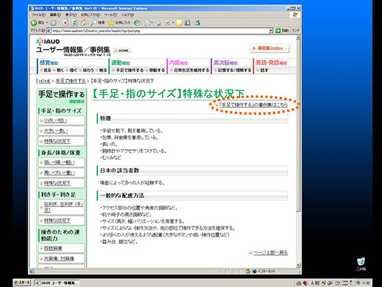 更にここから事例集をクリックすると、このようなビジュアルな事例が一覧できます。このように、大きな写真と、説明のページが表示されます。このページは、現在、IAUD会員のみなさまに公開されています。一般向けには、写真以外の「ユーザー情報集」のパートに限って公開されています。